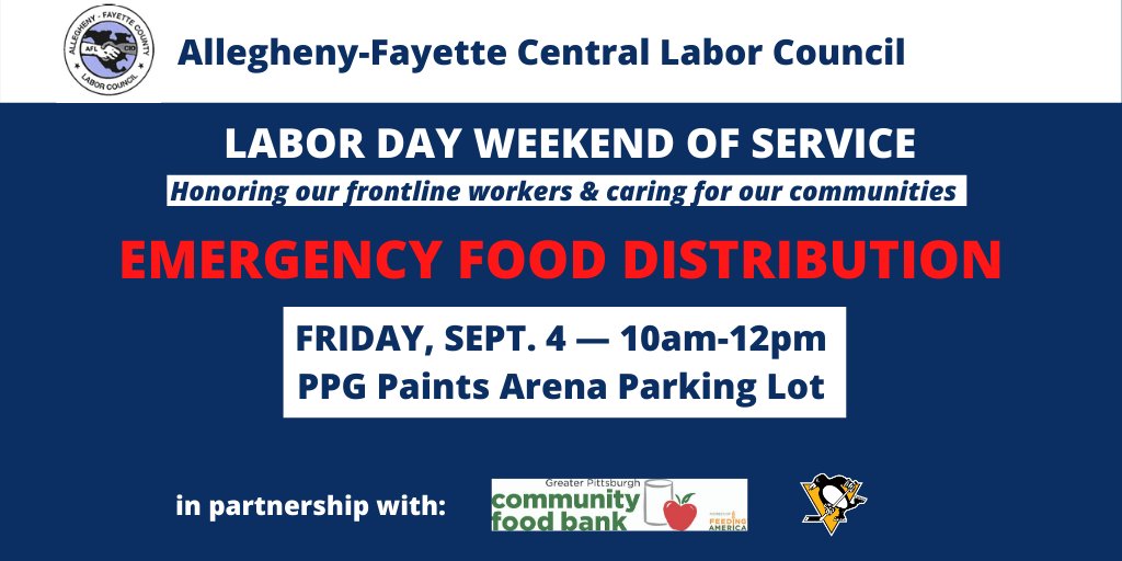 Greater Pittsburgh Community Food Bank On Twitter Together With Alleghneylabor And The Penguins Will Be Hosting A Drive Up Food Distribution Tomorrow Outside Of Ppg Paints Arena From 10a Noon Visit This